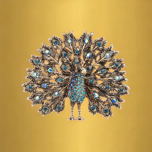 Elegante Pfauenbrosche: Ein funkelnder Hingucker, der jedem Outfit einen Hauch von Farbe verleiht